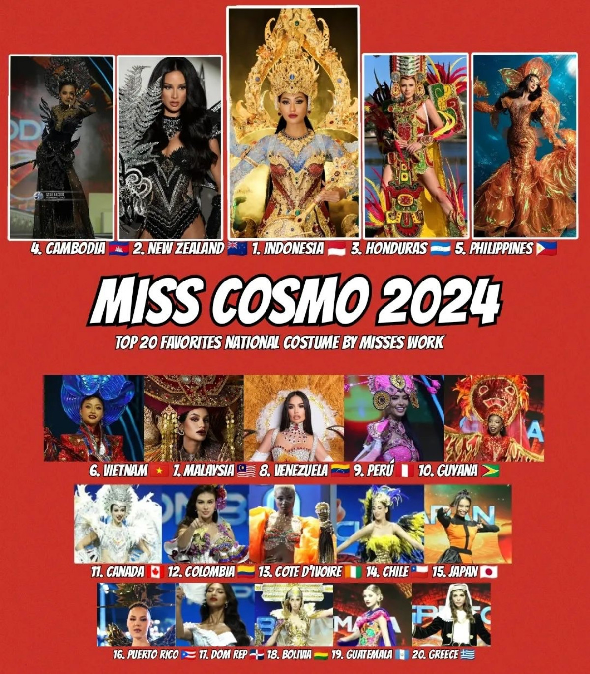 Chuyên trang Misses Work (sở hữu hơn 10.000K lượt người theo dõi) đã có BXH đánh giá những đại diện trình diễn Trang phục Dân tộc xuất sắc nhất. Hoa hậu Xuân Hạnh được xếp ở vị trí thứ 6 trong Top 10.