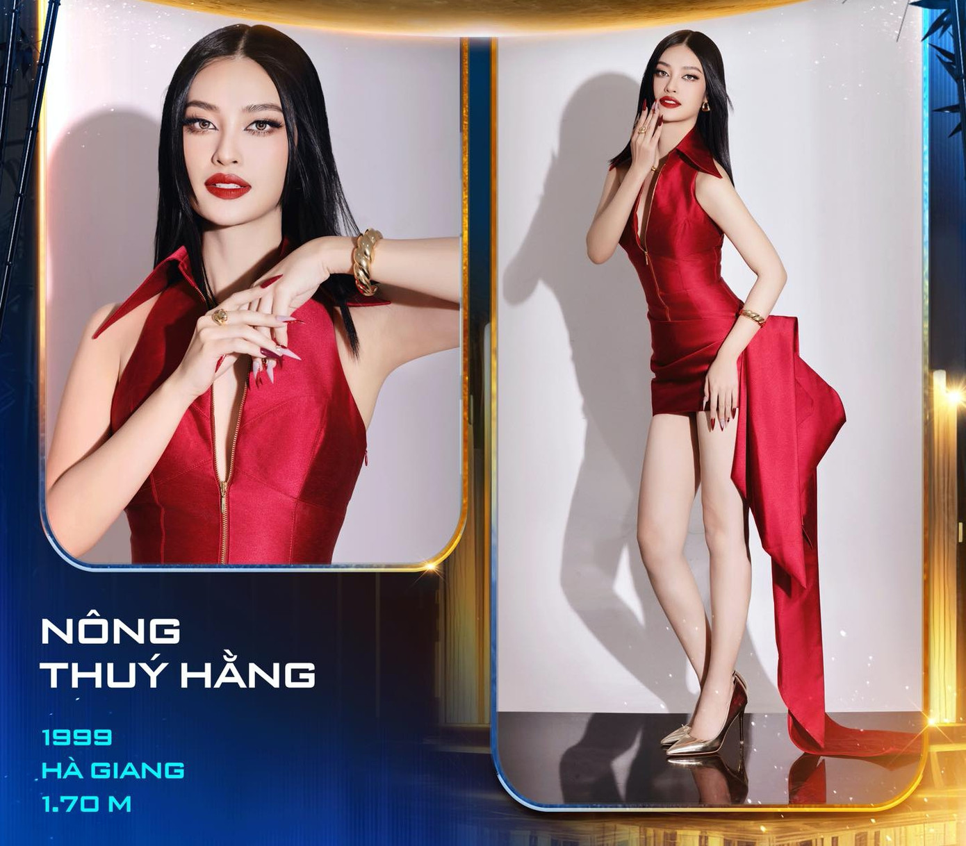 Nông Thúy Hằng sinh năm 1999, đến từ Hà Giang, cao 1m70. Người đẹp là gương mặt vô cùng quen thuộc với fan sắc đẹp Việt vì từng ghi danh rất nhiều cuộc thi nhan sắc trong nước như Miss World Vietnam 2019, Hoa hậu Việt Nam 2020. Tuy nhiên ở các cuộc thi này, Thúy Hằng chỉ dừng chân ở Top 40 chung cuộc. Thành tích cao nhất của Thúy Hằng là giành vương miện Hoa hậu các Dân tộc Việt Nam 2022 và Á hậu 2 Miss Friendship International 2023.