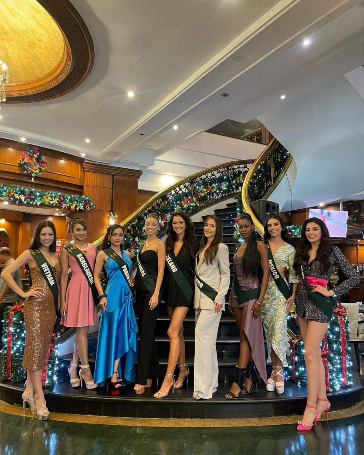Cao Ngọc Bích (ngoài cùng bên trái) có sắc vóc khá nổi bật so với dàn thí sinh Miss Earth 2024.
