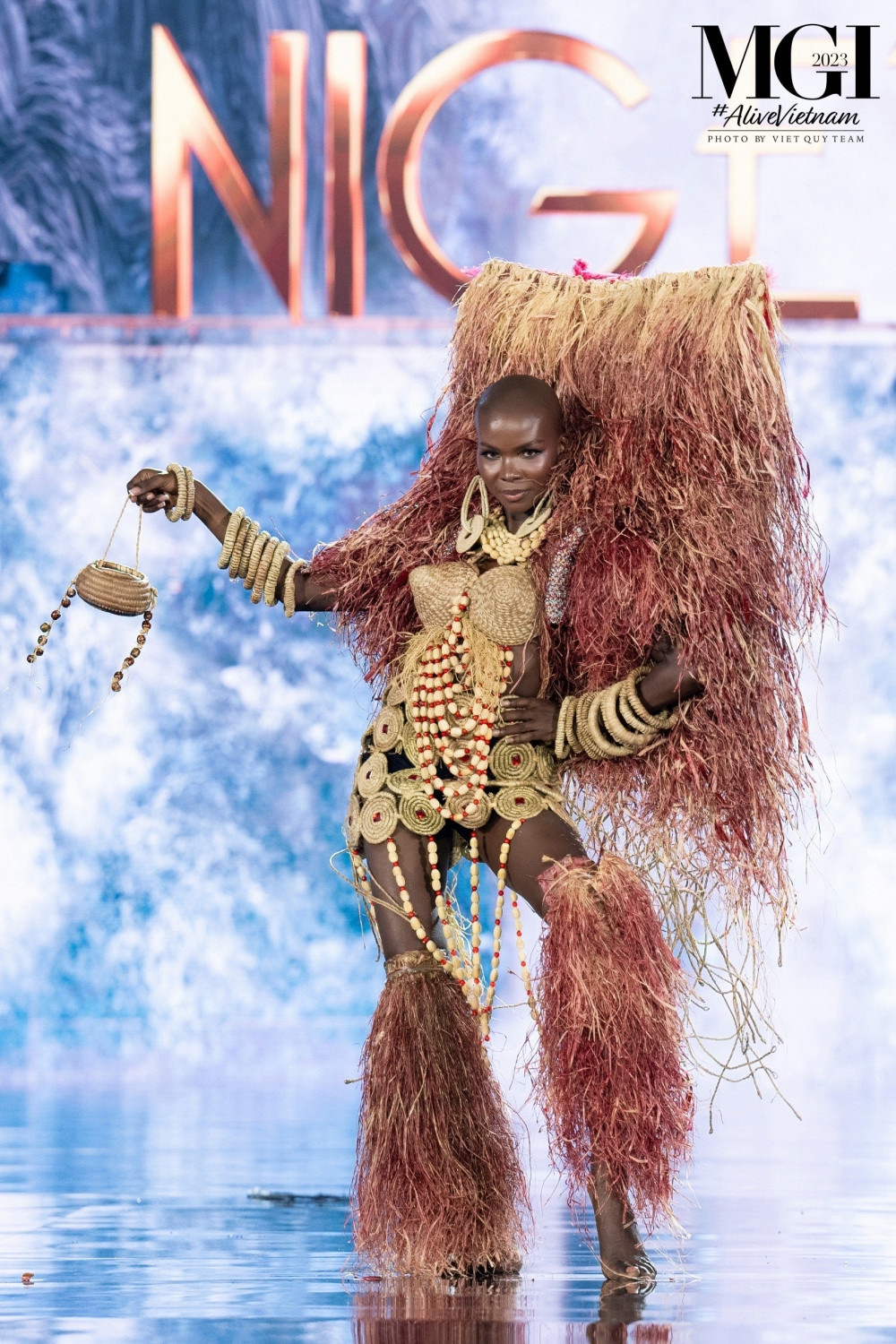 Miss Grand Nigeria - Hoa hậu Hòa bình Nigeria Boma Dokubo với thiết kế mang tên Cây Dừa. Tài nguyên thiên nhiên của Nigeria rất phong phú, đặc biệt là cây dừa, được gọi là Nkwu trong văn hóa Nigeria, có ý nghĩa quan trọng. Nó không chỉ là nguồn thực phẩm mà còn tượng trưng cho chiến thắng, hòa bình và sự phát triển. Phụ nữ Nigeria sử dụng dầu dừa và các sản phẩm liên quan để hỗ trợ gia đình và tạo thu nhập. Tác phẩm này tôn vinh di sản văn hóa của Nigeria và ca ngợi phụ nữ Nigeria.