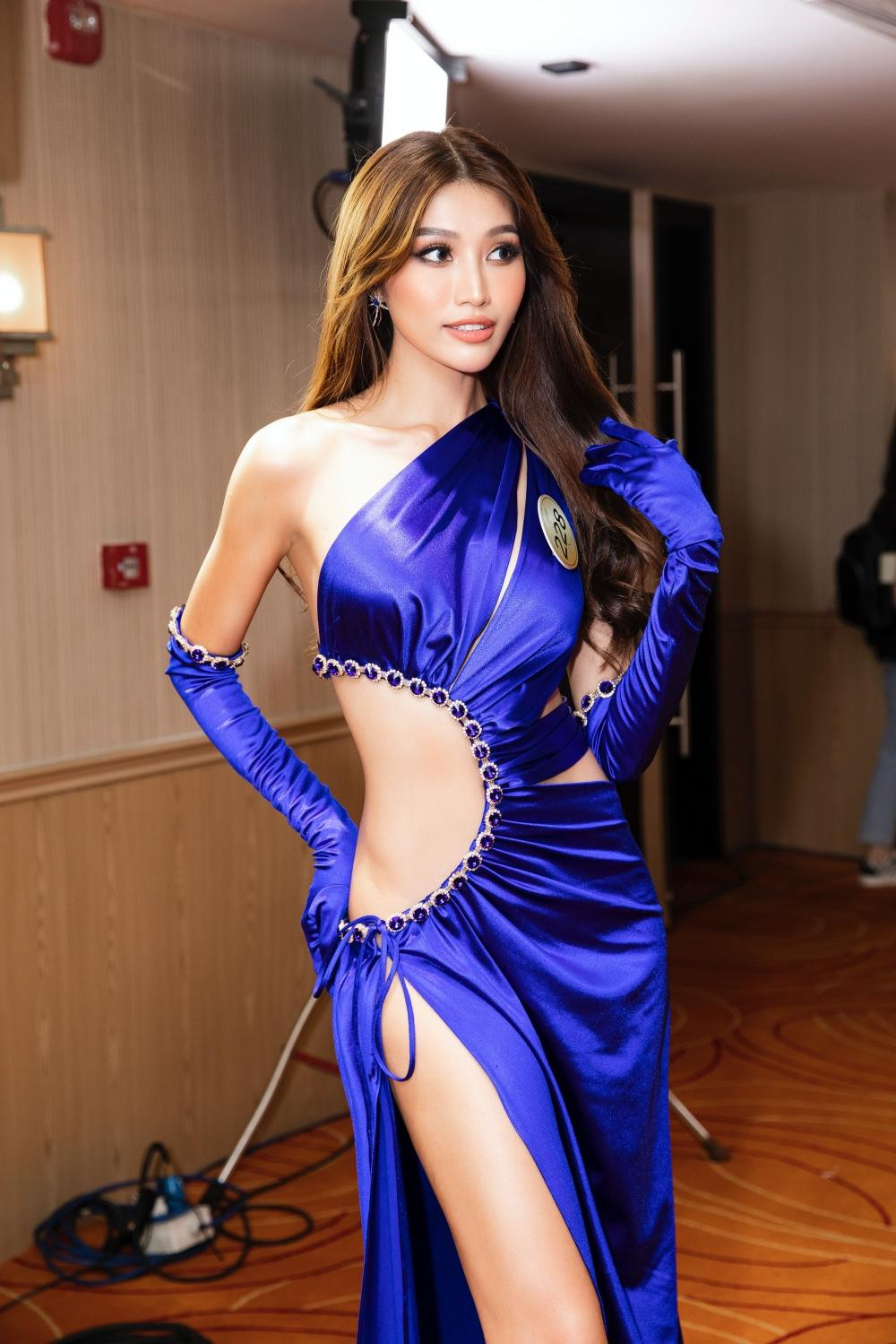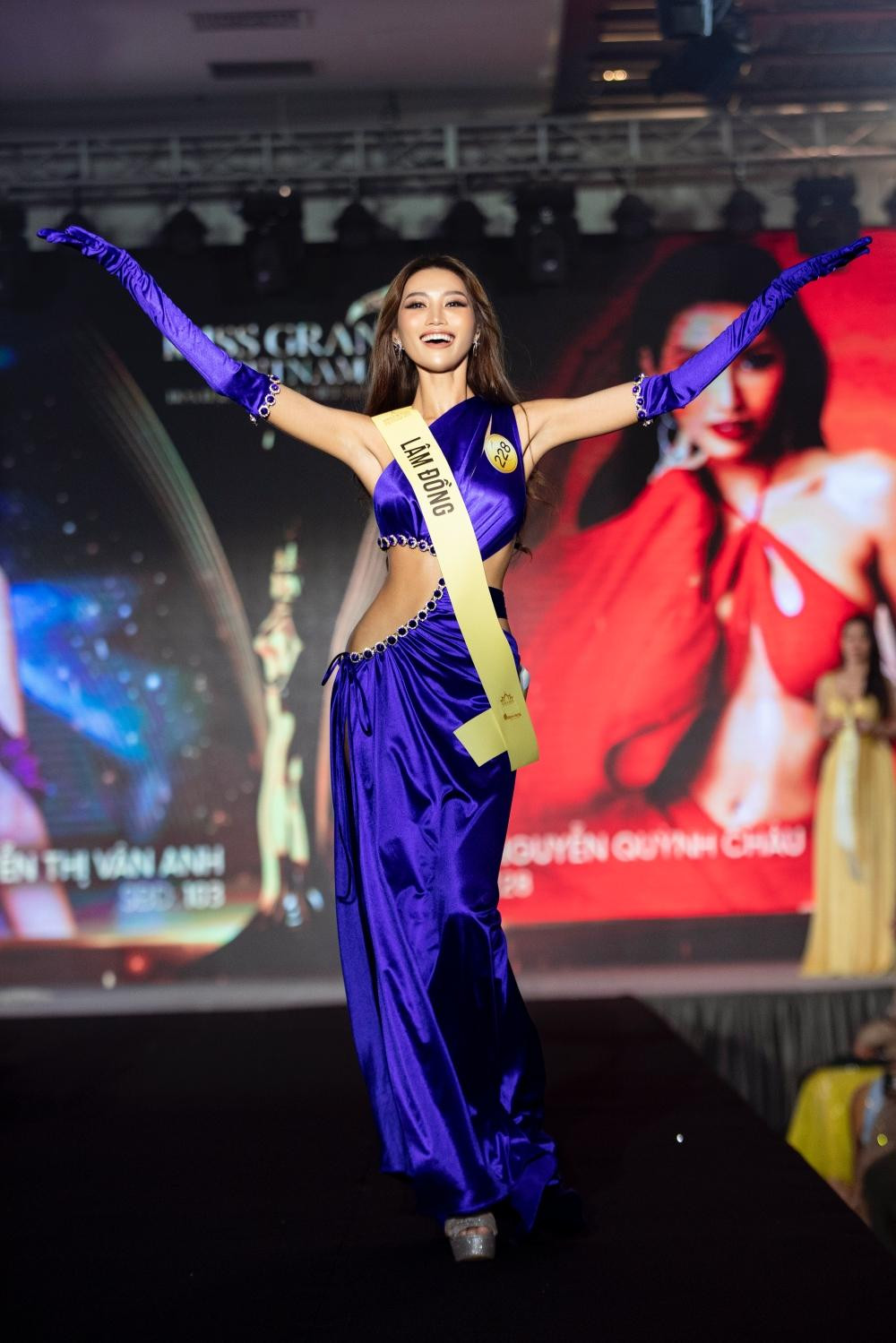 Xuất hiện tại buổi họp báo, Chế Nguyễn Quỳnh Châu diện thiết kế màu xanh được cắt xẻ táo bạo, khoe trọn đường cong quyến rũ. Mỗi lần xuất hiện tại Miss Grand Vietnam, Quỳnh Châu đều biết cách mang đến nhiều điều mới mẻ cho bản thân khiến các fan sắc đẹp không ngừng đặt kỳ vọng cho cô nàng.