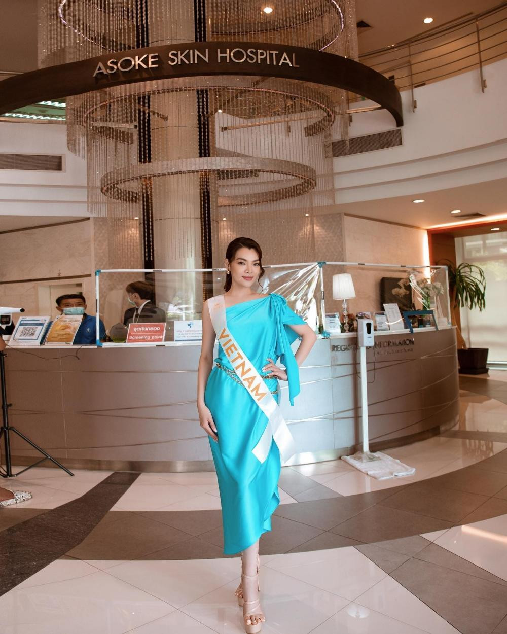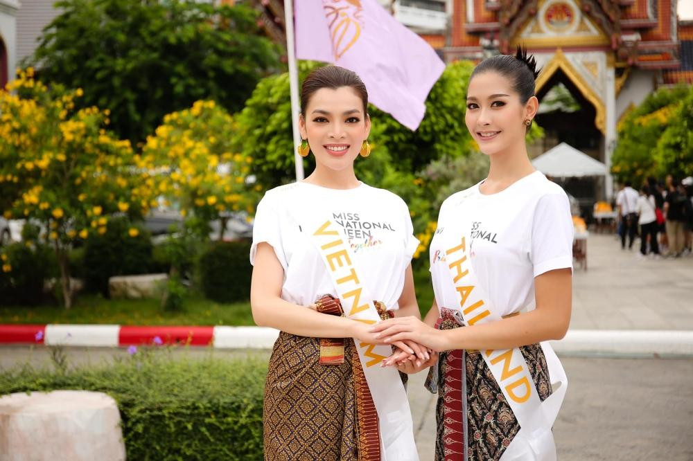 Sáng ngày 18/6, Trân Đài mặc trang phục truyền thống Thái Lan, cùng với các thí sinh đến thăm một ngôi chùa tại Bangkok.