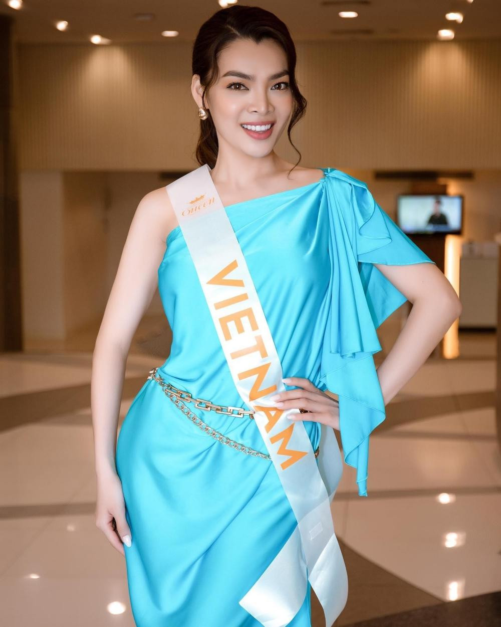Người đẹp cùng với thí sinh nước chủ nhà có màn chụp ảnh chung vô cùng thân thiết, hai cô gái khoe nhan sắc nhẹ nhàng mà vẫn vô cùng xinh đẹp.