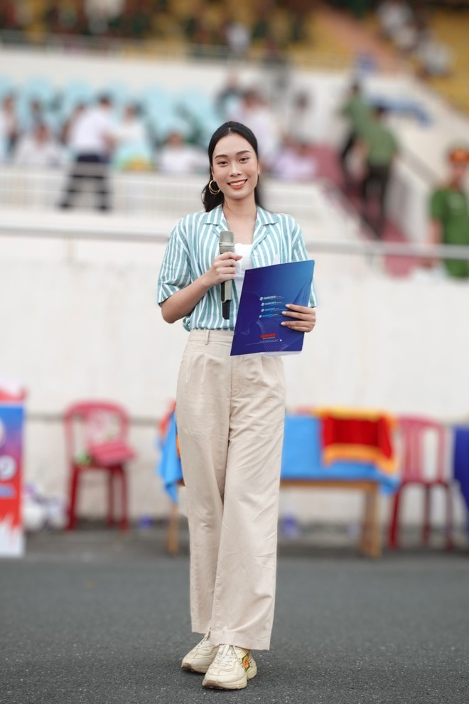 Trước đó, nàng hậu cũng từng chia sẻ với truyền thông về mong muốn theo đuổi con đường MC chuyên nghiệp. Dù chỉ mới tiếp xúc với lĩnh vực MC gần đây, nàng hậu rất nghiêm túc theo học khóa học được tin tưởng giao trọng trách dẫn dắt một số chương trình. Người đẹp được khán giả đánh giá cao nhờ khả năng ngoại ngữ cùng giọng nói truyền cảm và lối dẫn dắt khéo léo, tinh tế.