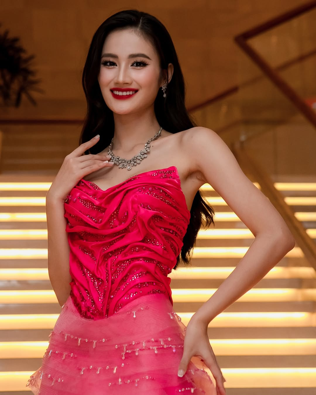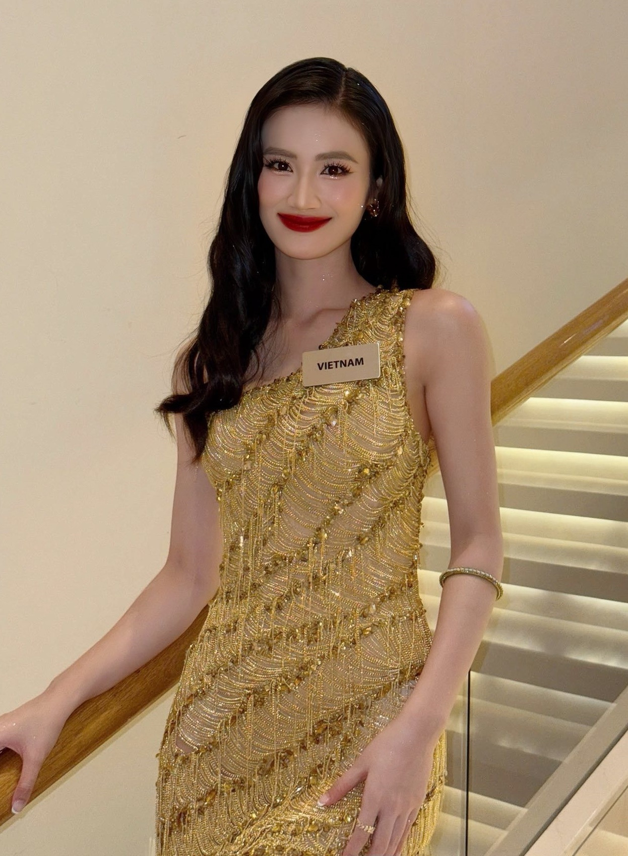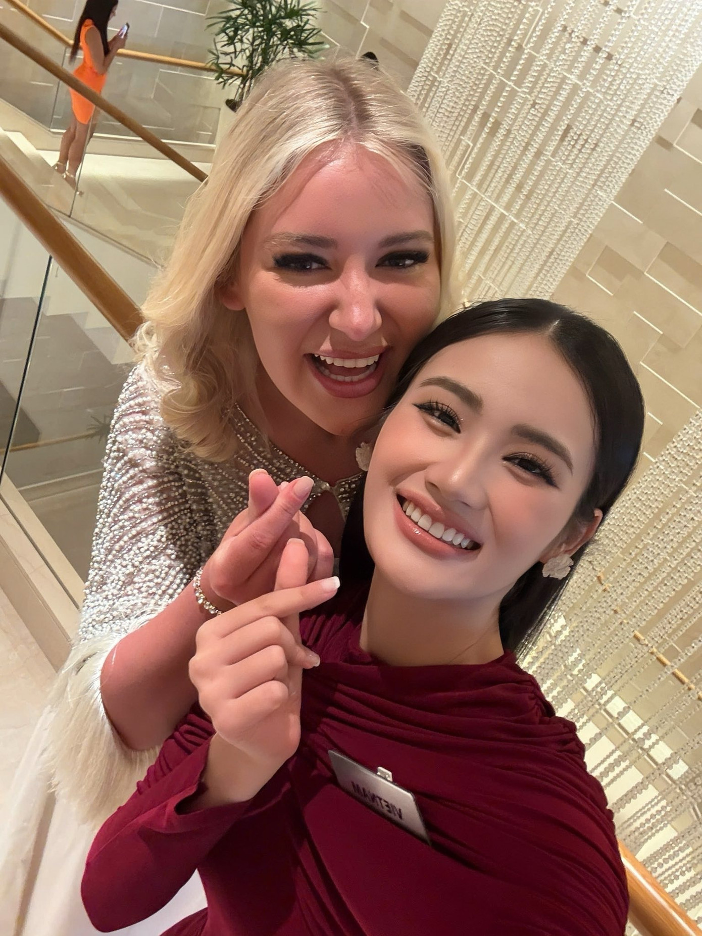 Hoa hậu Ý Nhi cũng đã có màn thay đổi hình ảnh rõ rệt khi cô đổi layout trang điểm. Không còn là hình ảnh trong veo ngọt ngào như khi mới đến Miss World 2025, nàng hậu giờ đây nhìn chững chạc, trưởng thành hơn với những set đồ thanh lịch và kiểu son đỏ sậm.