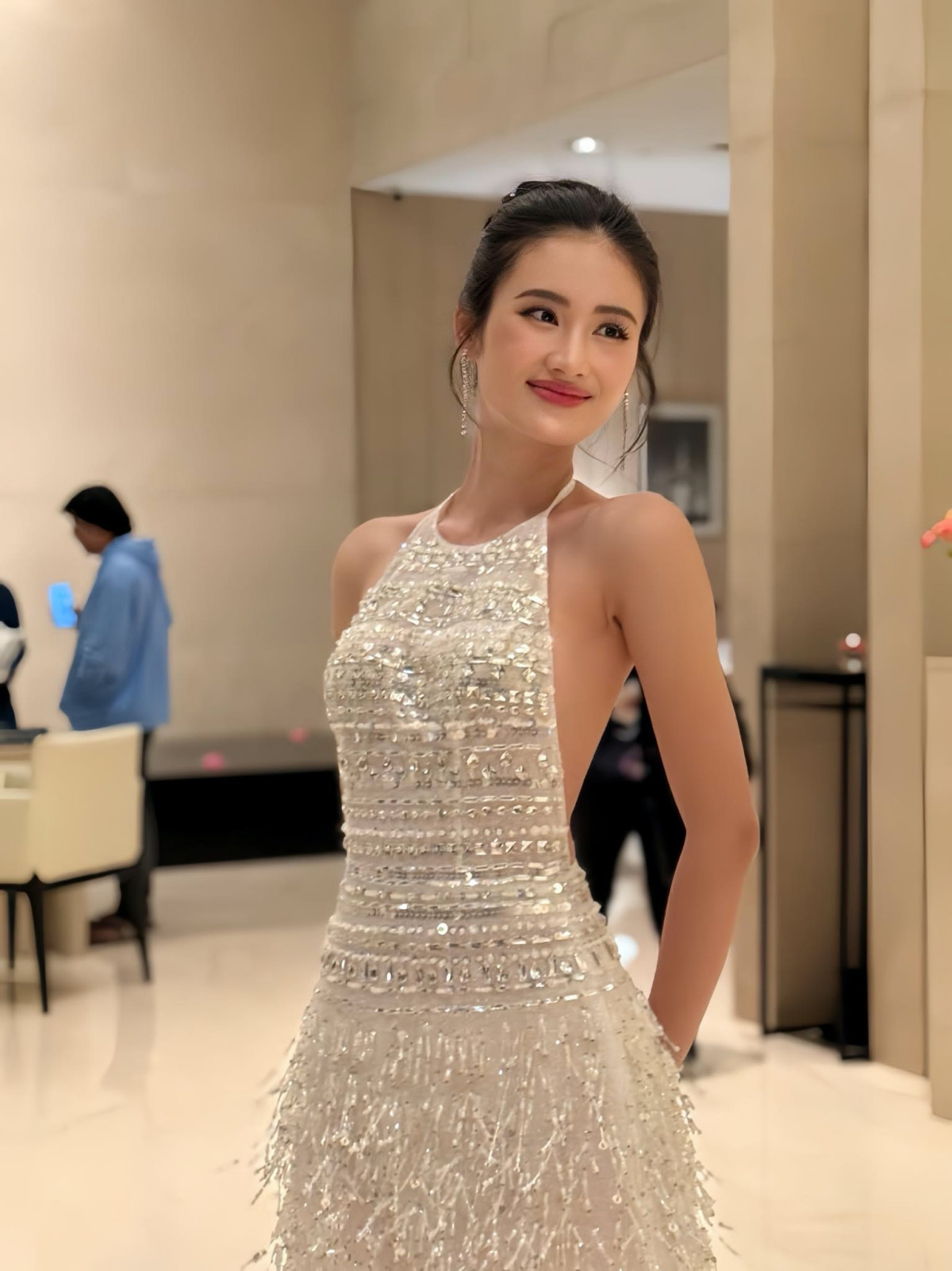 Trong buổi ăn tối của ngày thứ 3, Hoa hậu Ý Nhi mặc một mẫu váy cocktail dạng yếm, màu trắng lấp lánh, khoe trọn dáng vóc thon gọn, trẻ trung và vô cùng xinh đẹp.