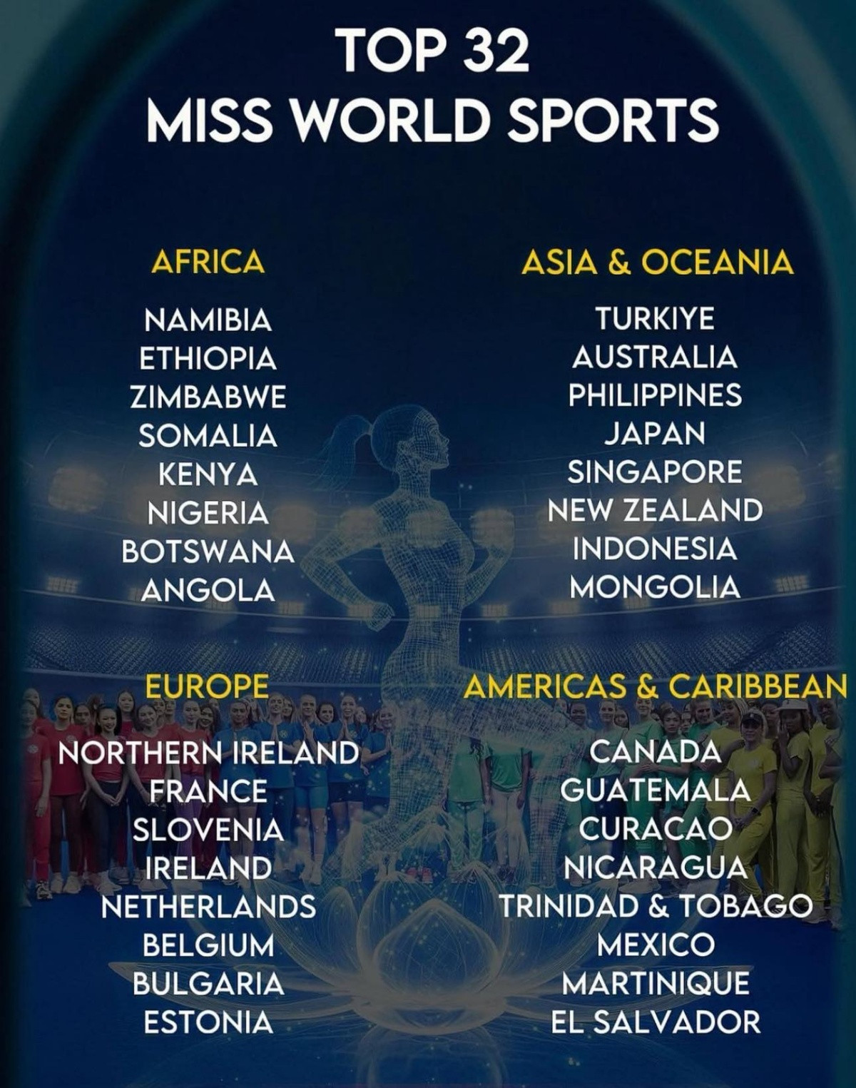 - Khu vực châu Á + châu Đại dương: Thổ Nhĩ Kỳ, Úc, Philippines, Nhật Bản, Singapore, New Zealand, Indonesia, Mông Cổ - đại diện Việt Nam và Thái Lan đều không lọt Top 32.