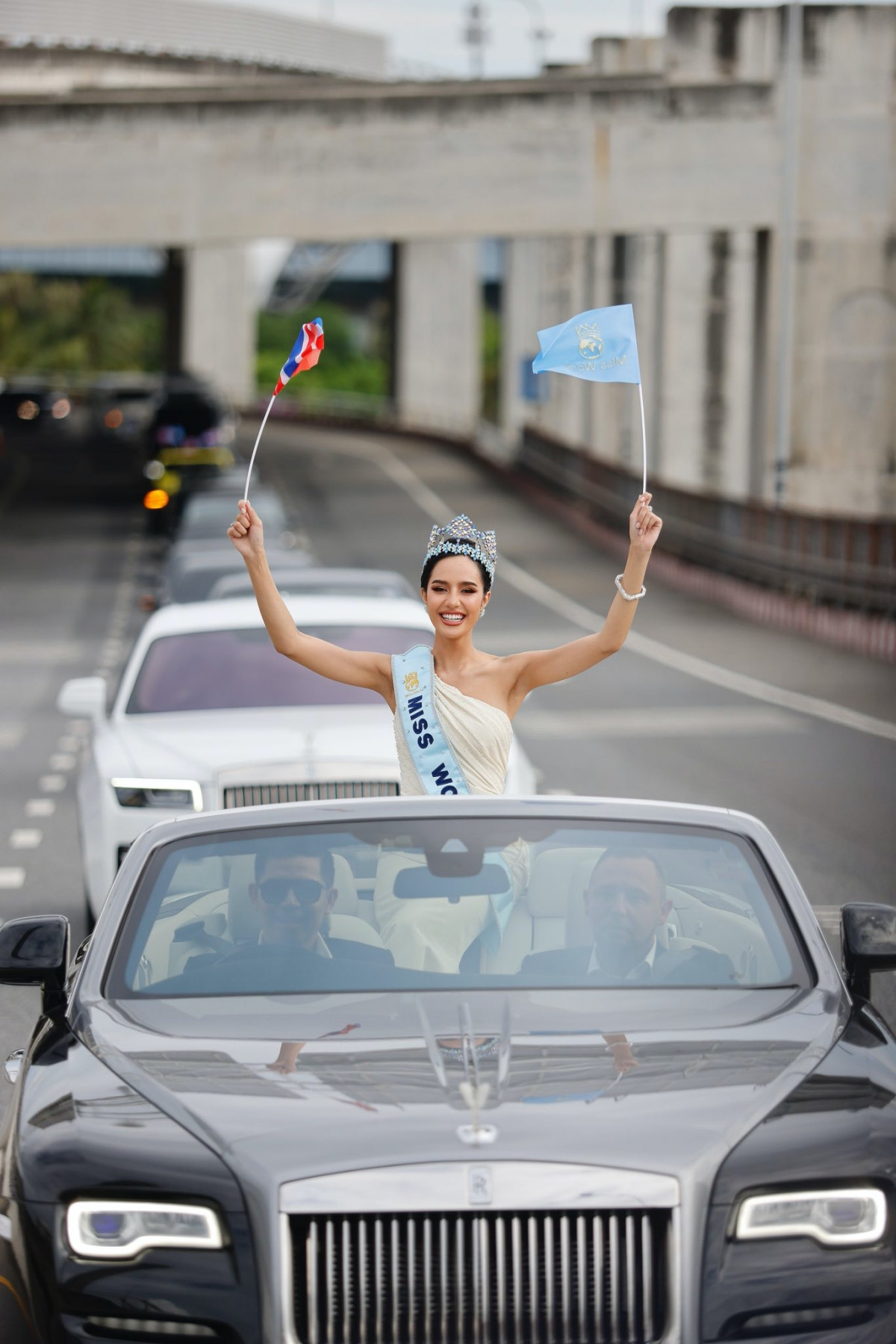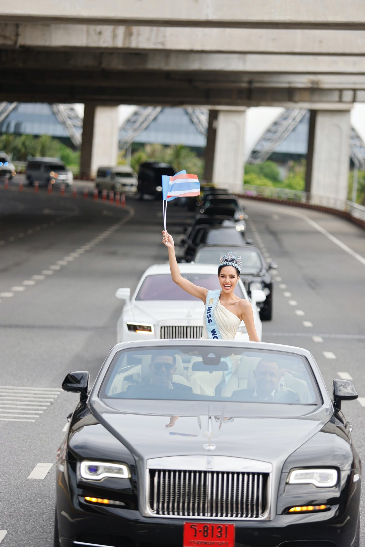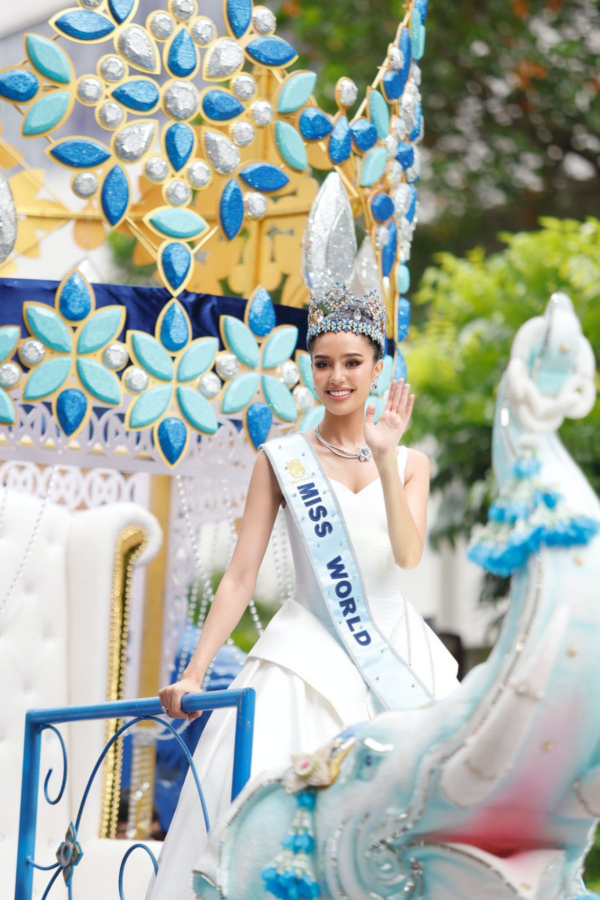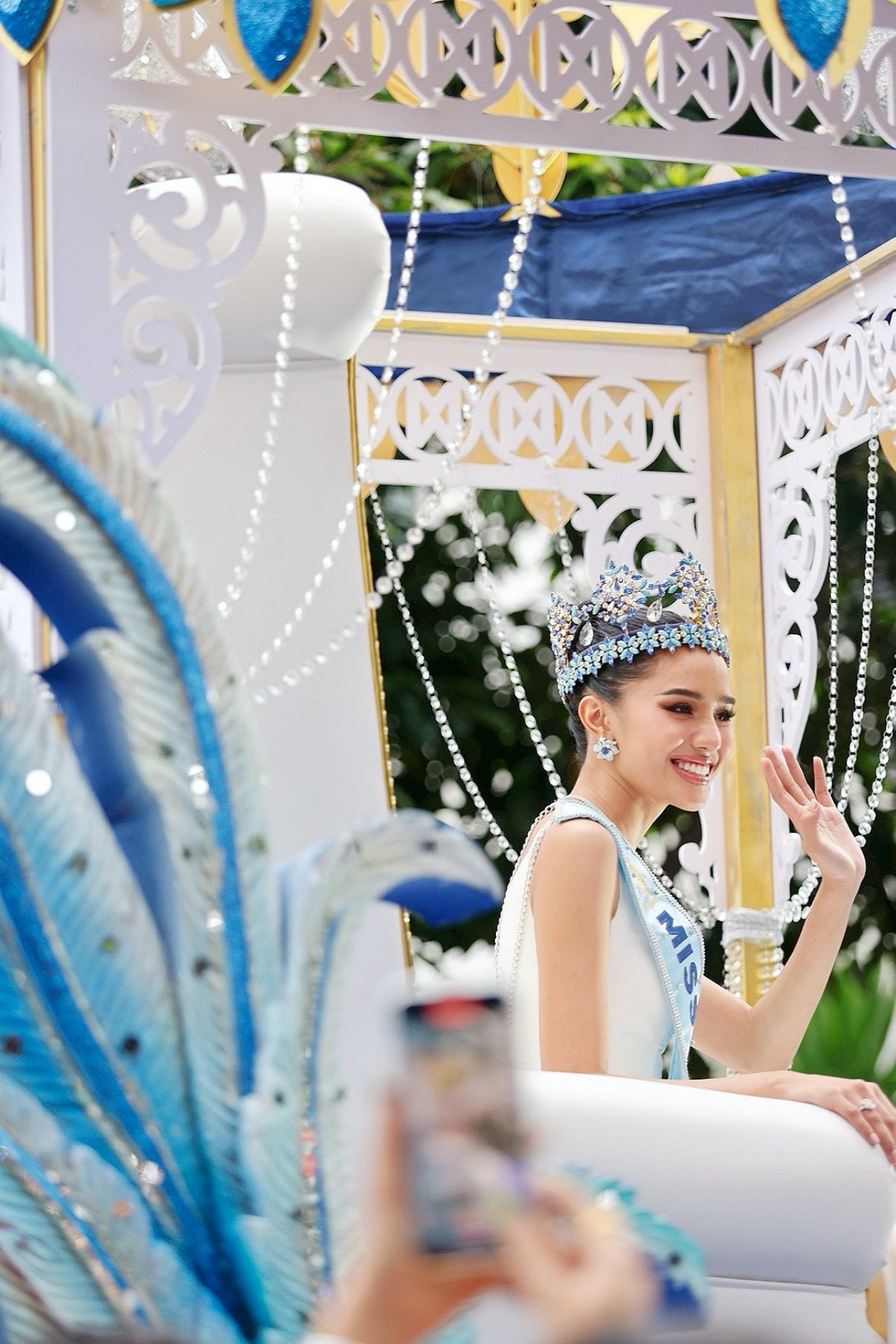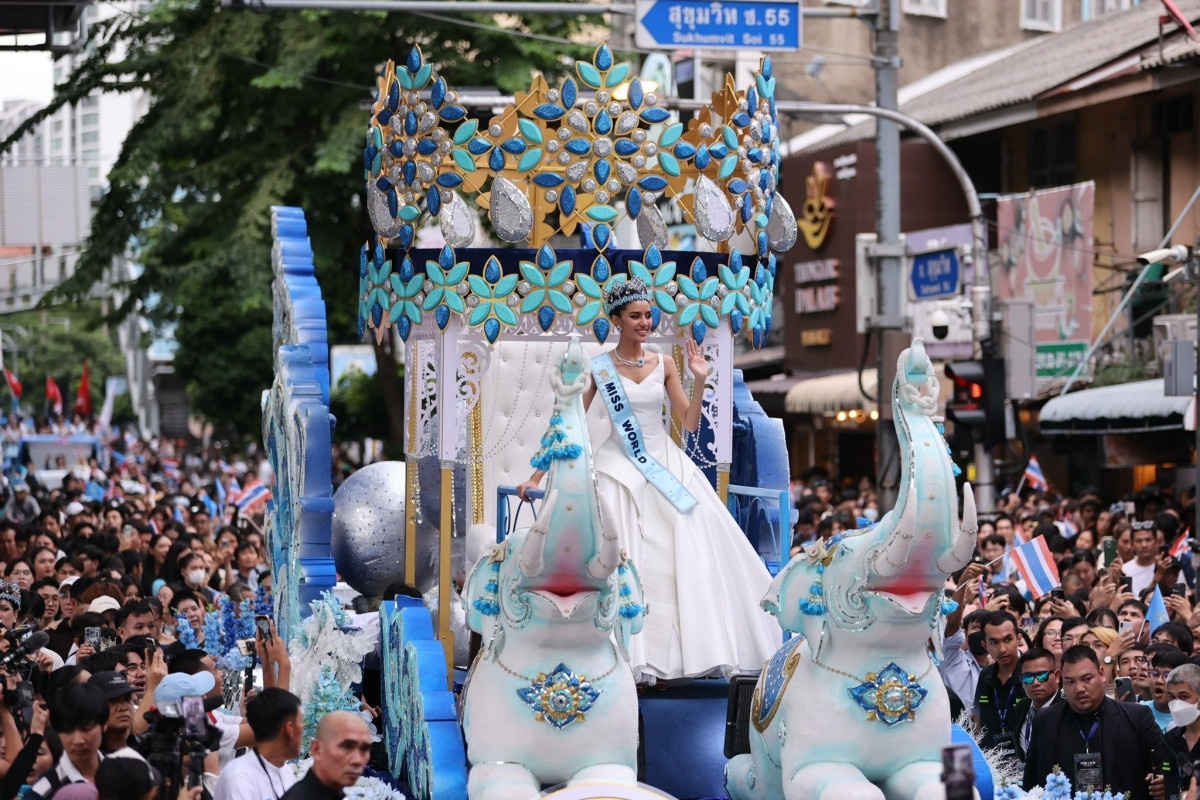 Dọc đường diễu hành, hàng trăm nghìn người dân từ khắp nơi đã đổ về Bangkok để chào đón Opal. Họ mang theo cờ Thái Lan, cờ Miss World và gọi vang tên Opal trong không khí xúc động và tự hào.