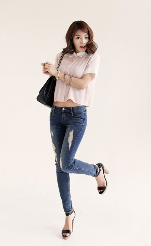 Bên cạnh đó, bạn có thể tự tin diện một chiêc quần bò cạp cao cùng roptop bởi sự kết hợp giữa vẻ khỏe khoắn và gợi cảm của một cô gái luôn thu hút mọi ánh nhìn.