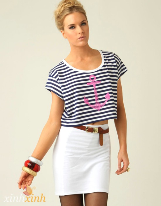 Mix croptop với chân váy xòe hay chân váy bút chì luôn đem lại cho bạn vẻ gợi cảm và duyên dáng. Bạn có thể phối hợp croptop với chân váy cao cạp để không lộ quá nhiều vòng hai, kín đáo mà vẫn rất sexy. Chắc chắn những cô nàng mê mẩn croptop không thể bỏ qua cách mix đồ này.