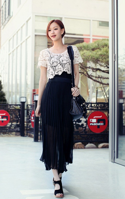 Kết hợp váy maxi và croptop đem lại cho bạn vẻ thướt tha và nữ tính khi dạo phố