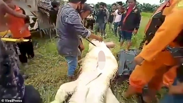 Trước đó, nhiều người đã hét lớn “Dimas” khi con cá sấu được đưa lên bờ vì hi vọng bé trai còn sống. Tuy nhiên, khi thấy thi thể của Dimas, không ít người đã bật khóc.