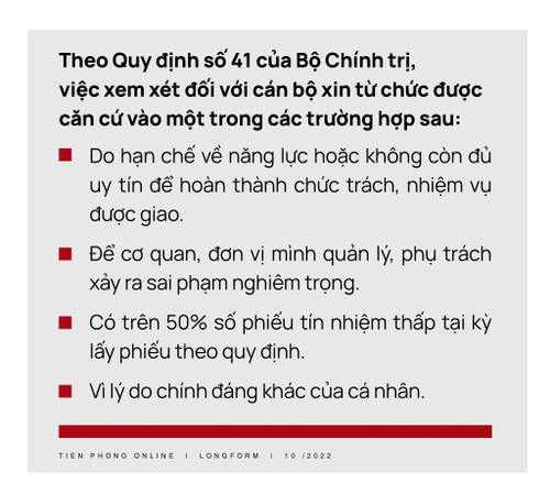 Đặc biệt, trong khi chưa thành được tiền lệ, chưa hình thành được văn hóa từ chức thì không nên chỉ dựa vào ý thức tự giác, của cán bộ mà phải có sự vào cuộc của cấp ủy, của cơ quan làm công tác tổ chức cán bộ.