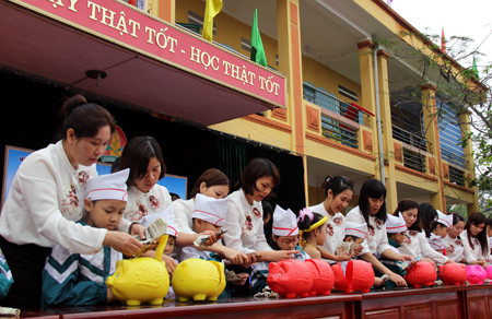 Em Nguyễn Ngọc Minh Giang chi đội 3G trường Tiểu học Nguyễn Trãi vui mừng cho biết: “Em thấy phong trào nuôi heo đất gây quỹ giúp bạn nghèo năm nay rất ý nghĩa, giúp chúng em hiểu được ý nghĩa của việc tiết kiệm, sự chia sẻ khó khăn với bạn nghèo, từ việc làm nhỏ bé phần nào giúp đỡ bạn có nguy cơ bỏ học có điều kiện tiếp tục đến trường..”