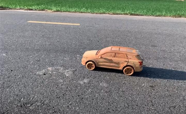 Đối với mô hình này, người thợ thủ công đã sử dụng một khối gỗ bách Phúc Kiến rắn chắc rồi từ từ cắt ra hình dạng cơ bản của chiếc SUV. Sau đó, anh đục một phần lớn gỗ để mở cabin. Sau khi hình dạng cơ bản đã được hình thành, các công cụ cầm tay đơn giản bao gồm một cái đục được sử dụng để tạo ra một số thiết kế phức tạp hơn.