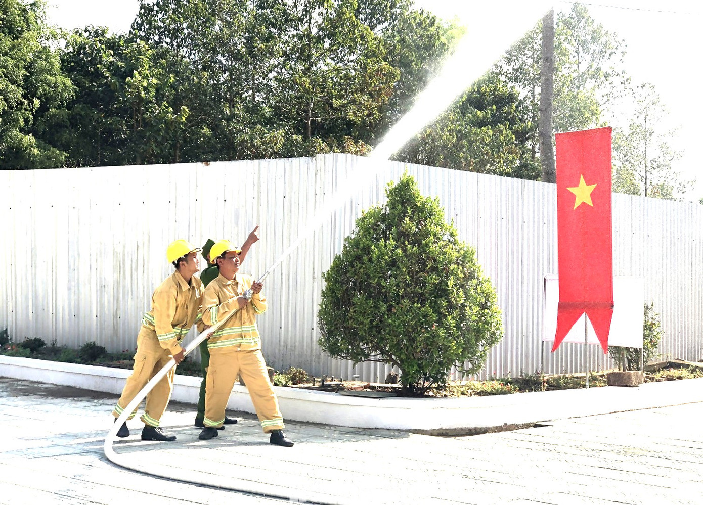 | Cán bộ phòng cháy, chữa cháy trao đổi nghiệp vụ trong quá trình triển khai mô hình |