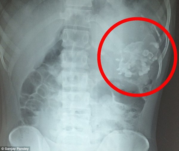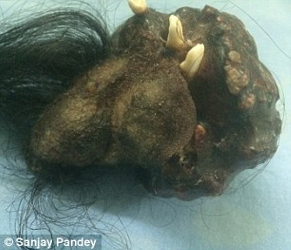 Trong ca mổ, các bác sỹ tại bệnh viện Swaroop Narayan đã bất ngờ tìm thấy "dị vật" là một khối xương có đủ răng lẫn tóc ngay trong bụng của Narendra. Theo tiến sỹ Rajeev Singh, người trực tiếp thực hiện ca mổ, Narendra đã mắc phải hội chứng "thai trong thai".