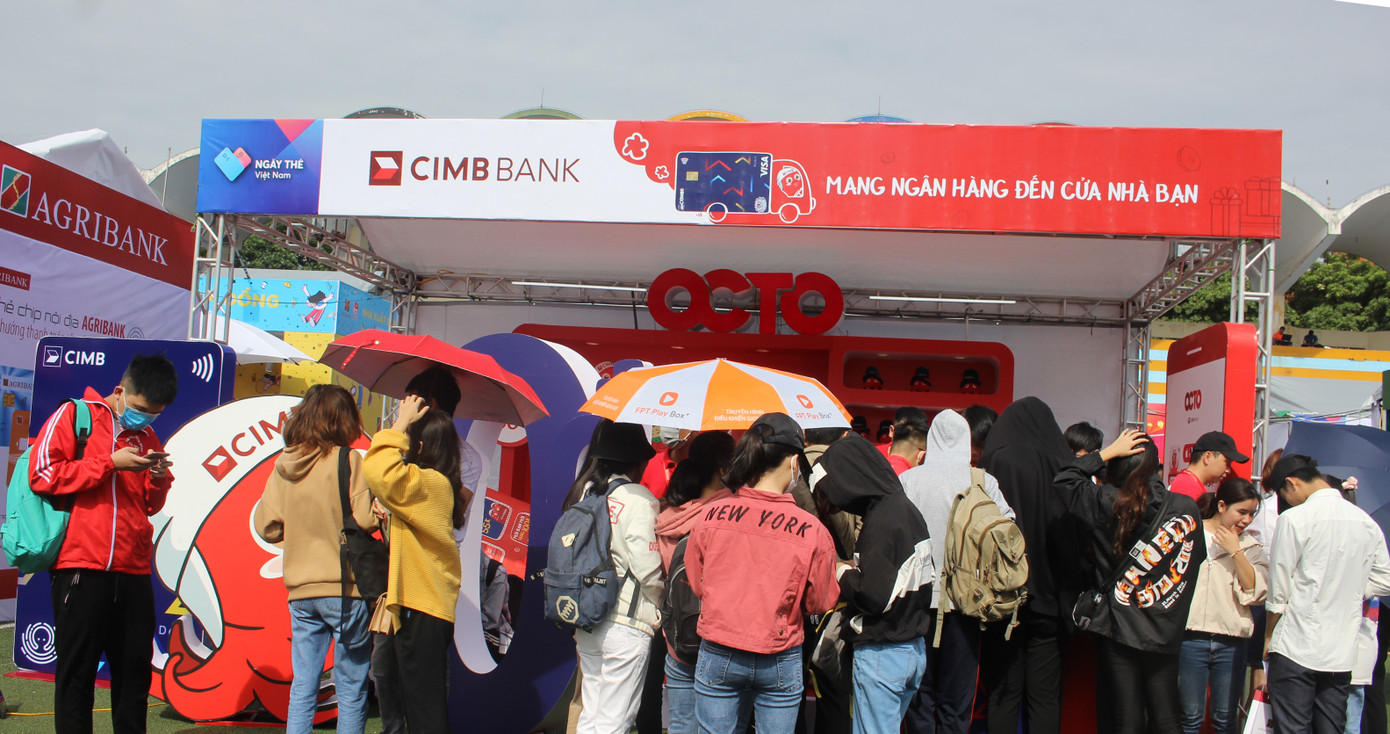 Khách hàng mở thẻ CIMB đăng ký thông tin qua ứng dụng Octo by CIMB; nhận ưu đãi miễn 5 loại phí kèm theo; hoàn tiền 100.000 đồng và nhận khuyến mãi mua sắm hấp dẫn trên các trang thương mại điện tử Shopee, Lazada, thanh toán xem ghim CGV chỉ 55.000 đồng/ vé. Riêng tại Sóng Festival – Ngày Thẻ Việt Nam, CIMB đã tặng hàng trăm thú bông Octo và túi tote thời trang cho khách hàng mở thẻ.