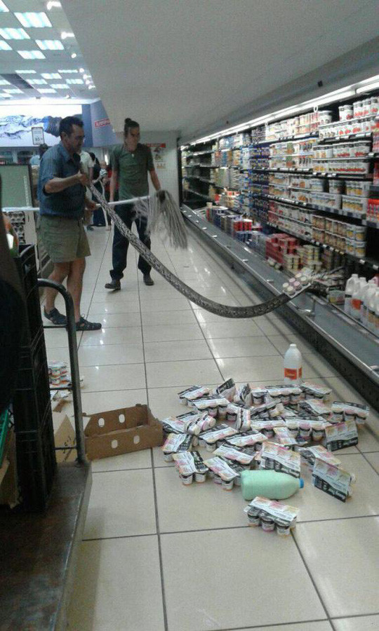 "Con trăn nằm kẹt trong tủ lạnh. Có thể nó đã lọt vào đó thông qua trần nhà hoặc đường ống nước. Có rất nhiều bụi rậm ở sau cửa hàng và lũ rắn sống ở đó" - cô Esnouf nói. Nữ quản lý phải gọi người tới giúp và liên lạc với một thợ bắt rắn địa phương. Người này đã lôi con trăn ra khỏi đống sữa chua rồi để vào bao tải.