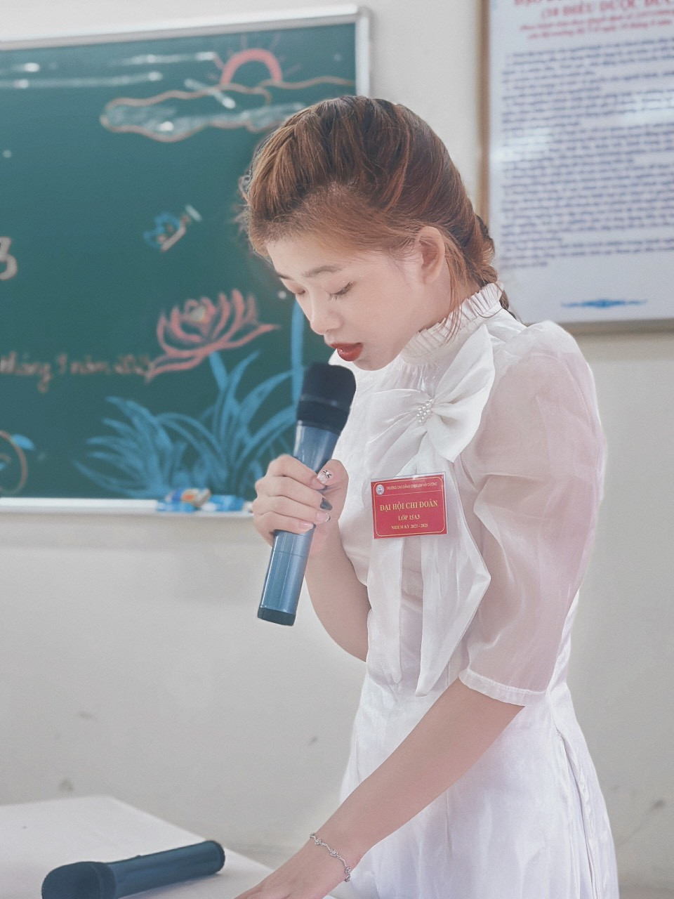 | Thùy Trang cùng các bạn sinh viên tham gia Đại hội Chi Đoàn. |