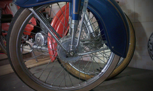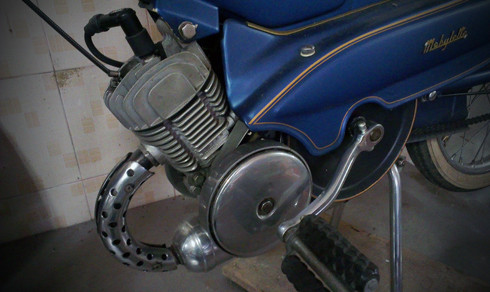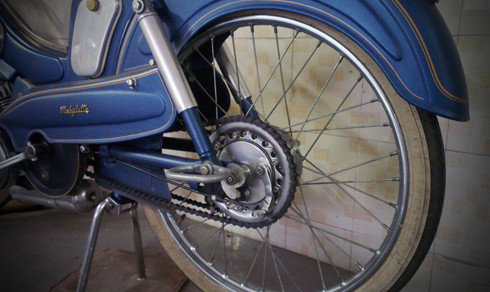 Mẫu xe cổ nổi tiếng với màu xanh đặc trưng Motobecane AV88 sử dụng động cơ xi-lanh đơn 2 thì làm mát bằng gió dung tích 50 phân khối.