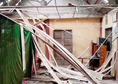 Động đất khiến hàng trăm công trình ở huyện Mộc Châu, Sơn La bị hư hỏng. Ảnh: Báo Sơn La.