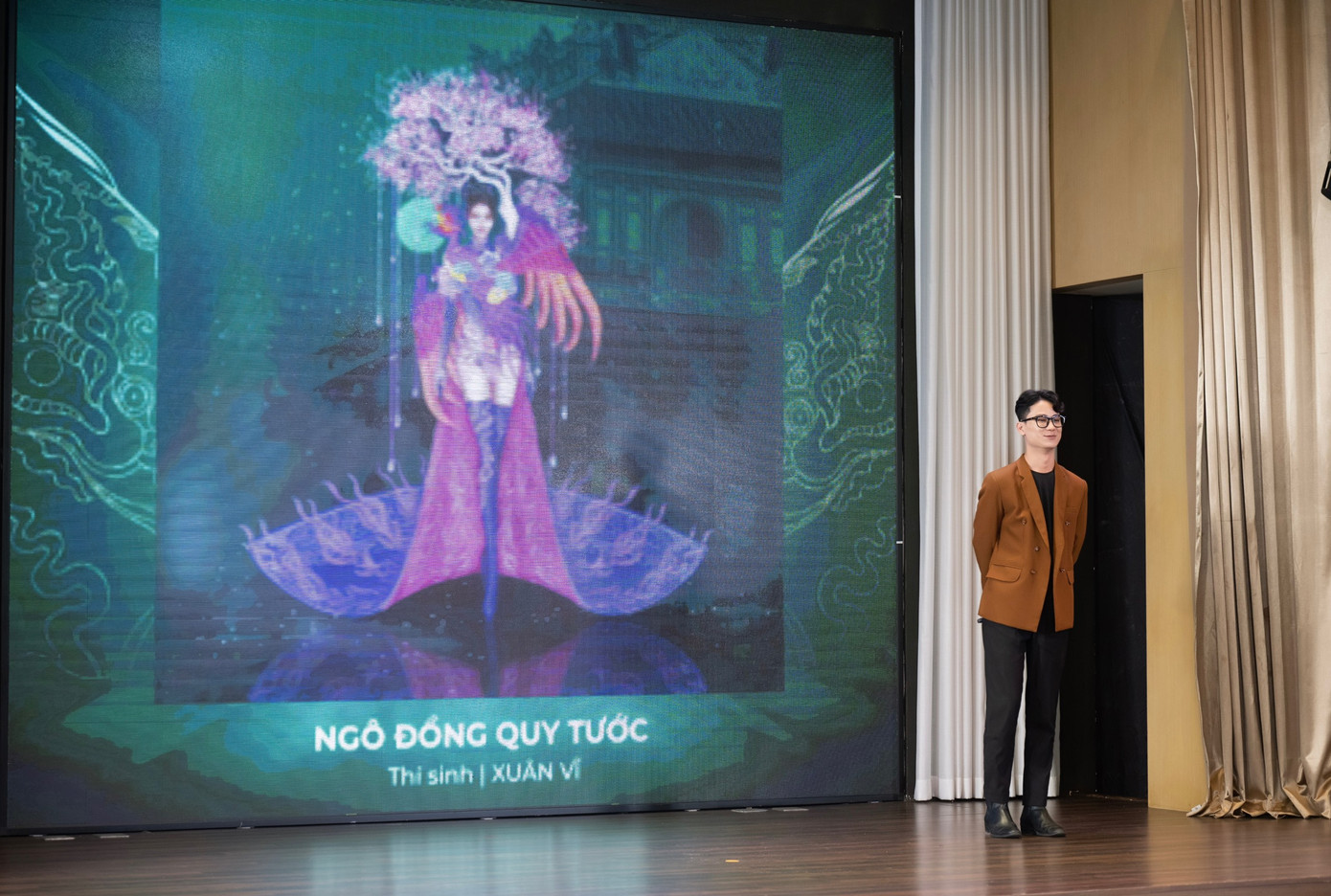 Bên cạnh sự sáng tạo độc đáo, bộ trang phục còn chứa đựng những thông điệp tinh thần về lịch sử và tình yêu quê hương. Xuân Vĩ đã khéo léo kết hợp hình ảnh chim phượng hoàng và cây ngô đồng để tạo nên một tác phẩm trang phục thể hiện sự phát triển vượt bậc của Việt Nam từ xa xưa đến hiện tại.