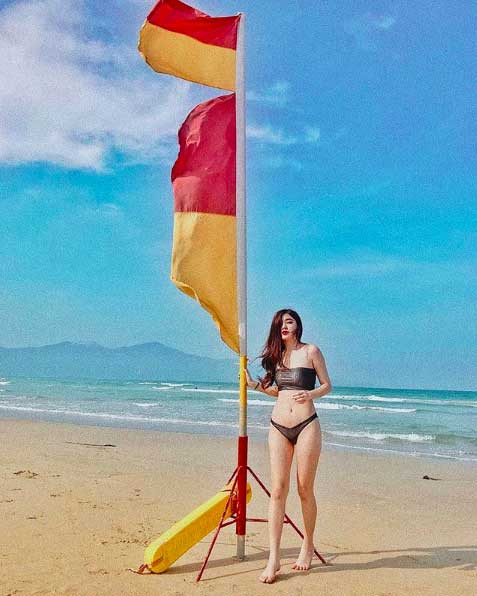 Salim (Hoàng Ngân) tung ảnh cô diện đồ bơi liền thân, tuy rằng kín đáo nhưng vẫn khoe trọn vóc dáng nóng bỏng của hot girl Hà thành