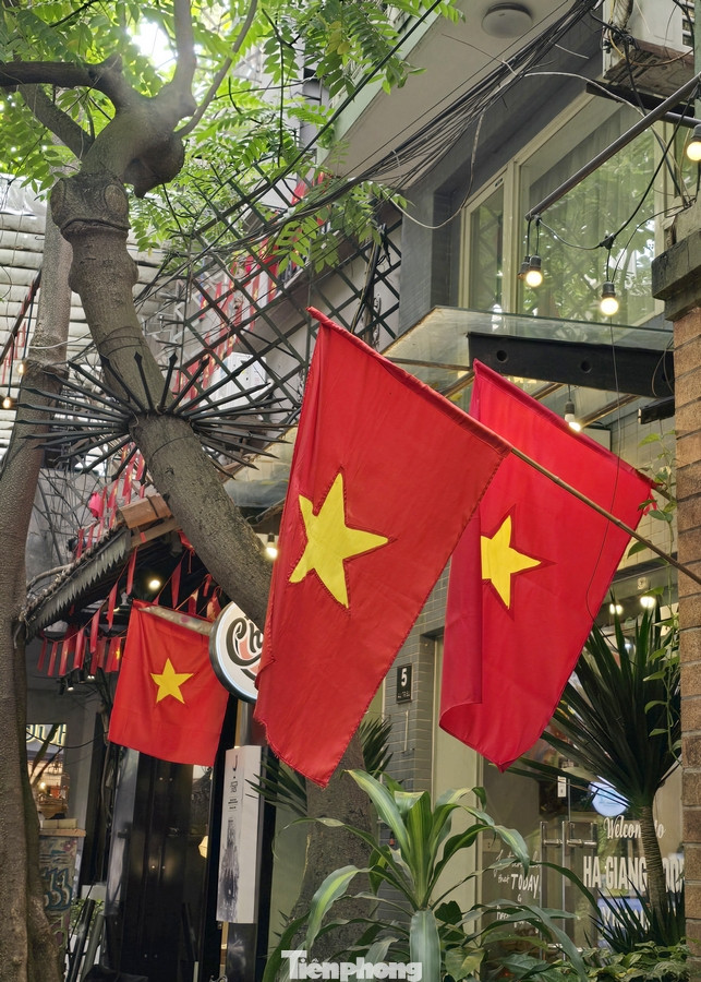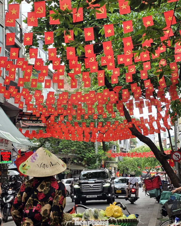 | Nhiều con đường, tuyến phố thủ đô rợp sắc đỏ của cờ hoa. |