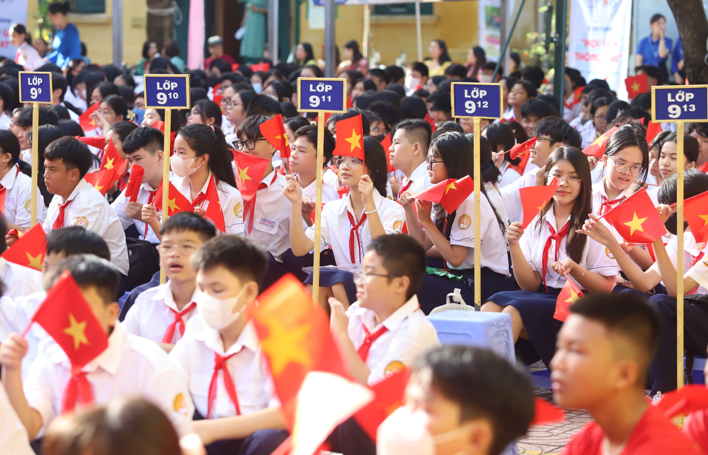 | Bạn trẻ phấn khởi bước vào năm học mới. |
