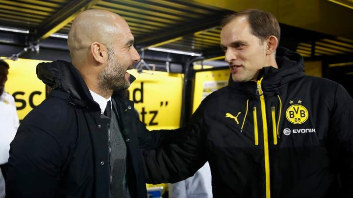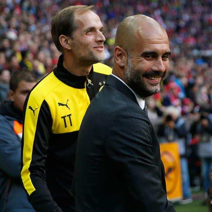 HLV Guardiola dẫn dắt Bayern Munich từ năm 2013 đến năm 2016. Trong cùng thời gian đó, Tuchel là thuyền trưởng của hai đội bóng ở Bundesliga là Mainz và Borussia Dortmund. HLV Guardiola áp đảo với 4 chiến thắng sau 5 lần gặp nhau, trong đó có chiến thắng ở chung kết cúp quốc gia Đức.