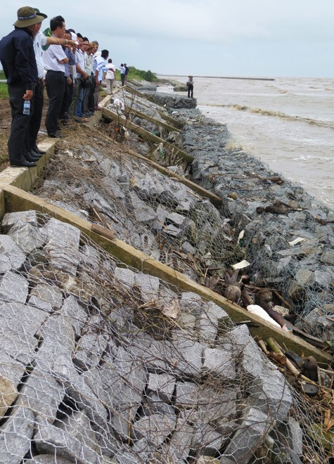 Kè rọ đá bị sóng biển chia cắt