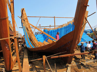 HTX Nghĩa Phú đang đóng tàu vỏ gỗ của ngư dân Nguyễn Đức Thảo vay theo Nghị định 67. Dự kiến khoảng 4 tháng tới, con tàu này sẽ hạ thủy.