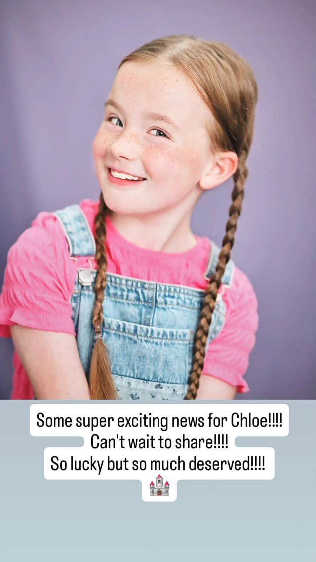 Cụ thể, trên trang Instagram cá nhân, Chloe đã đăng hai story khiến các “thám tử online” bật chế độ truy vết và suy đoán. Một story cô bé dùng emoji - biểu tượng bảng cắt cảnh, một dụng cụ không chỉ dùng trên phim trường mà còn là biểu tượng của quá trình làm phim. Trong story này, cô bé đăng “Đã xác nhận”, ám chỉ cô bé vừa chính thức tham gia một dự án phim ảnh mới.