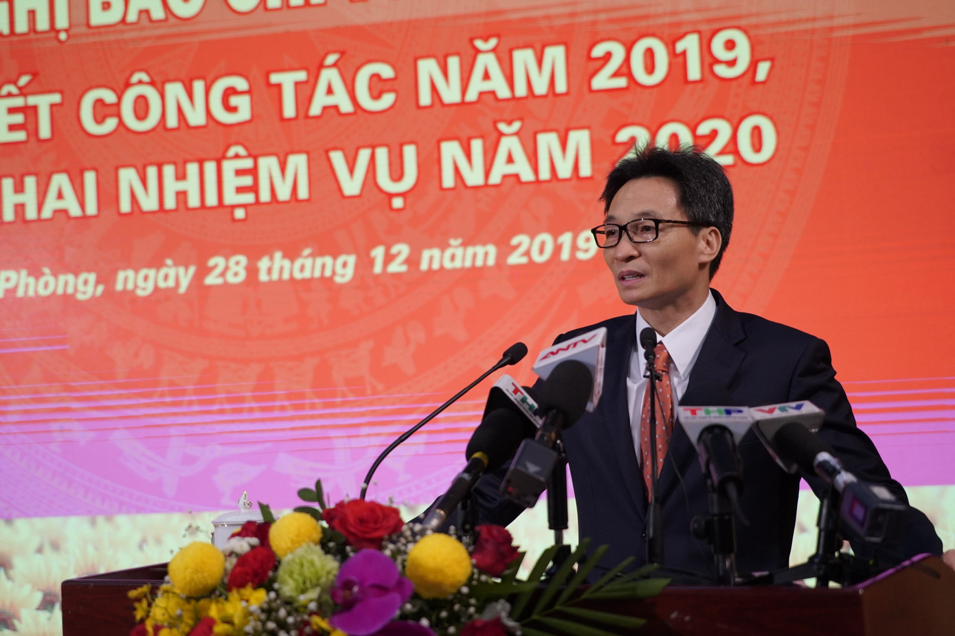 Các đại biểu đại diện một số cơ quan báo chí đọc tham luận tại Hội nghị. Phát biểu tại Hội nghị, Phó Thủ tướng Vũ Đức Đam thay mặt Chính phủ biểu dương những kết quả của hoạt động báo chí trong năm 2019. Theo Phó thủ tướng, năm 2019, 12/12 chỉ tiêu của đất nước đề ra đã được hoàn thành và vượt mức kế hoạch, trong đó mức tăng trưởng cả nước đạt trên 7%, các lĩnh vực xã hội có nhiều tiến bộ, hình ảnh vị thế của đất nước rất khó khăn… trong đó có sự đóng góp vô cùng quan trọng của báo chí.