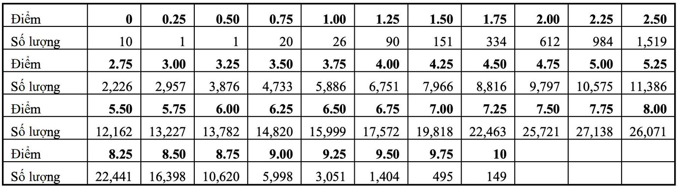 Kết quả phân tích phổ điểm thi tốt nghiệp THPT môn Hoá học của cả nước năm 2021 cho thấy, 348.046 thí sinh tham gia thi bài thi môn này. Trong đó điểm trung bình là 6,63, điểm trung vị là 7,0. Điểm số có nhiều thí sinh đạt nhất là 7,75. Số thí sinh điểm <= 1 là 58 (chiếm tỷ lệ 0,02%), số thí sinh đạt điểm dưới trung bình là 56,756 (chiếm tỷ lệ 16,31%).