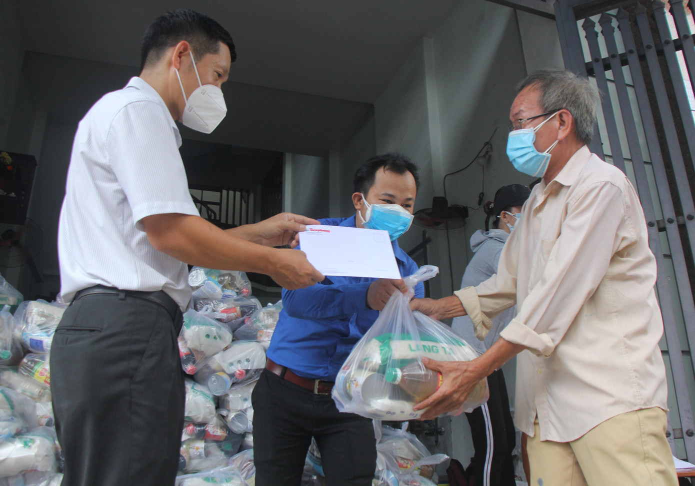 Mỗi phần quà có trị giá ước tính 500.000 đồng, bao gồm tiền mặt 200.000 đồng cùng một túi nhu yếu phẩm với các mặt hàng như dầu ăn, nước tương, gạo, đường...