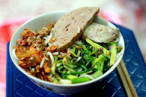 Canh bún: Nhiều người thường nhầm canh bún với bún riêu vì nước dùng được chế từ cua. Tuy nhiên món này chỉ dùng cà chua chứ không có dấm bỗng hay sấu... Một bát đầy đủ gồm bún sợi nhỏ, rau cần hay muống theo mùa, tóp mỡ, hành phi. Tùy sở thích thực khách, chủ quán sẽ cho thêm giò bò hoặc tai. Món này ghi điểm nhờ bún thơm mùi bột gạo, nước dùng thanh, dịu, rau giòn, chín tới và mùi thơm ngậy của hành phi, tóp mỡ. Một bát có giá khoảng 20.000 đồng. Bạn có thể tới phố Nguyễn Siêu để thưởng thức. Ảnh: Lan Itou.
