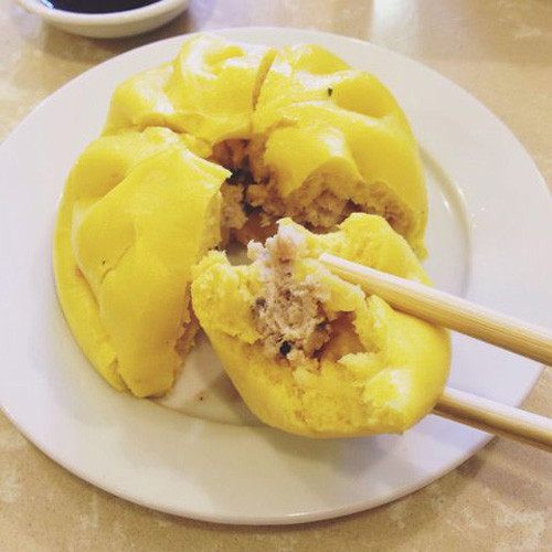 Bánh bao gà: Bánh bao trên phố Hàng Trống luôn giữ được lớp vỏ mềm, xốp. Phần nhân bên trong dùng thịt gà thay thế để tạo sự khác biệt. Thịt gà được nêm nếm gia vị vừa phải và xào đủ mềm nên không bị bở. Ngoài ra, lý do khiến thực khách yêu thích món này là lớp nhân đầy đặn, thơm mùi tiêu hành. Một chiếc có giá khoảng 10.000 đồng. Ảnh: lozi.