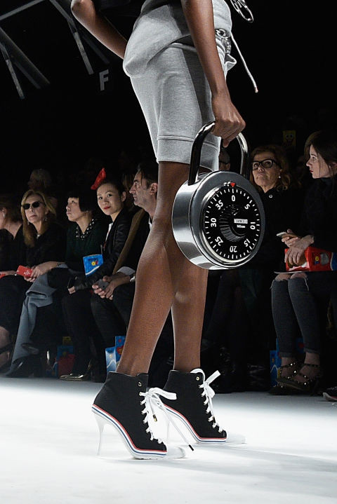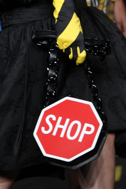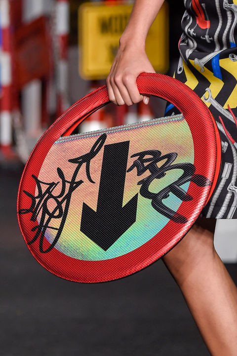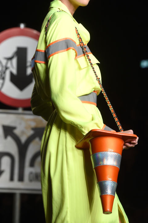 Không chỉ túi, BST Moschino Xuân Hè 2016 cũng mang đến những thiết kế trang phục đầy sáng tạo từ công trường và những thiết bị bảo hộ lao động.