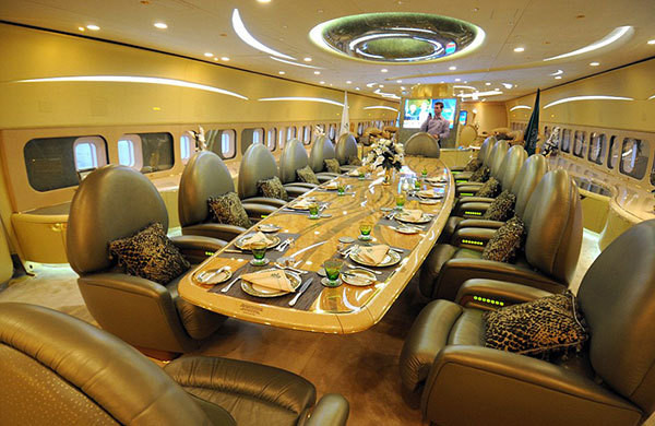 Còn đây là ước mơ của mọi đại gia đam mê máy bay trên thế giới, Năm 2008, Hoàng tử Saudi - Alwaleed bin Talal al-Saud đặt hàng một chiếc Airbus A380, chiếc máy bay chở khách lớn nhất thế giới với giá 484 triệu USD. Hiện nay, loại máy bay này được một số hãng lớn sử dụng như Singapore Airlines, Emirates với sức chứa lên tới 800 khách. Tuy nhiên, vị hoàng tử Saudi không cần đến 800 ghế. Ông đã thiết kế toàn bộ khoang máy bay rộng lớn theo ý mình với những căn phòng xa hoa và cả chỗ đỗ cho chiếc ôtô Rolls-Royce mà ông yêu thích. Trên máy bay còn có một khu cầu nguyện riêng cho Hoàng tử.