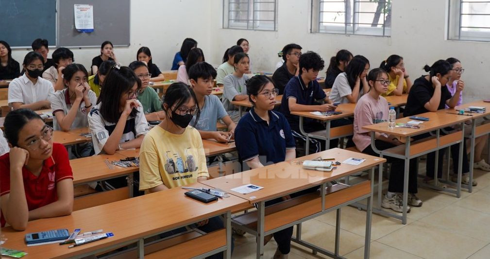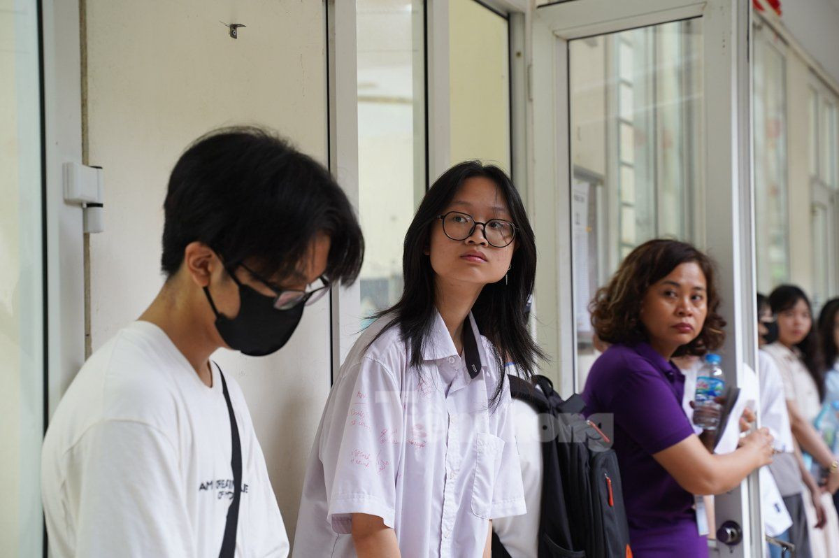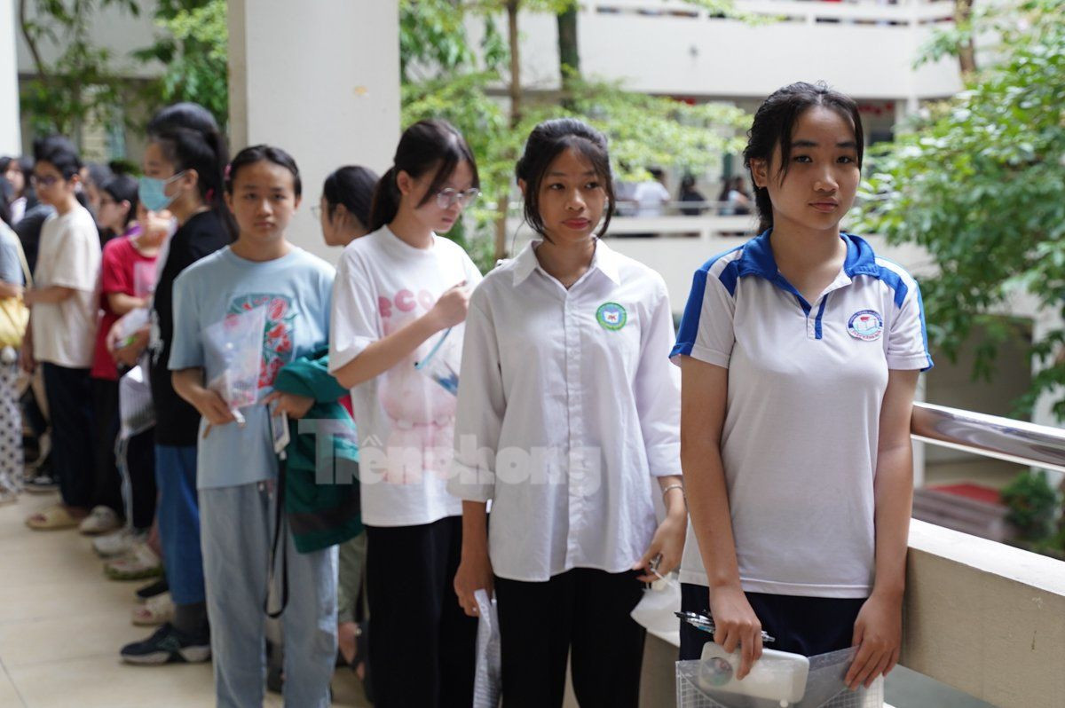 Sáng nay, từ 6h30, thí sinh tham dự kì thi tuyển sinh lớp 10, Trường THPT Chuyên Ngoại ngữ bắt đầu làm thủ tục vào phòng thi.