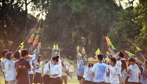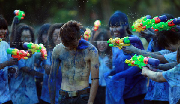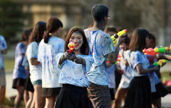 Không chỉ đơn thuần chụp ảnh quần xanh, áo trắng hay những tà áo dài truyền thống, năm nay, học sinh Hà Nội đã táo bạo khi có "mốt" quần jean, áo phông trắng và trào lưu tung bột màu. Bạn Hương (trường PTTH Việt Đức - Hà Nội) cho biết: "Nô đùa hết cỡ cùng với bột màu sẽ là kỷ niệm đáng nhớ nhất đời học sinh chúng em. Bột màu và nước sẽ đưa chúng em trở về với những trò nghịch ngợm tuổi thơ, của những ngày đầu cắp sách đến trường".