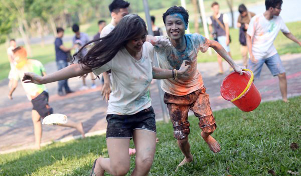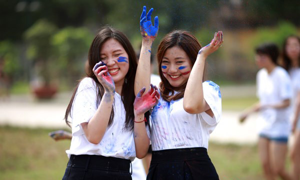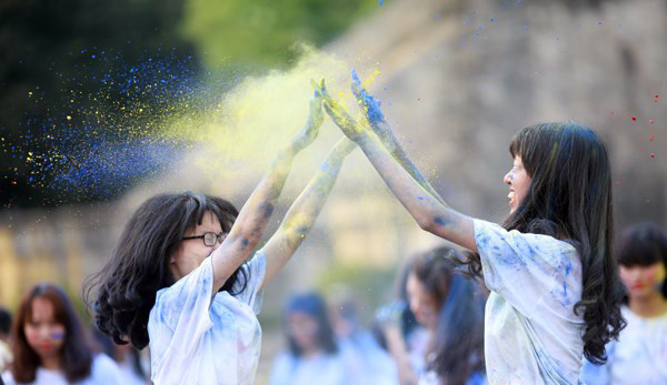 Dưới đây là những hình ảnh táo bạo của các bạn học sinh khi chụp ảnh kỷ yếu với bột màu: