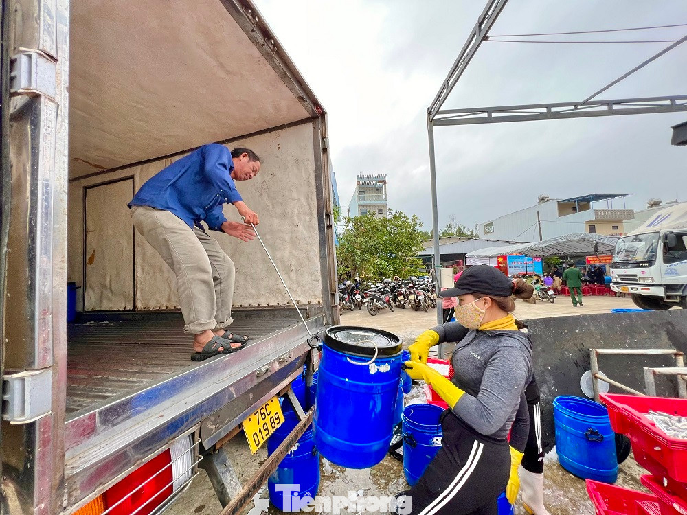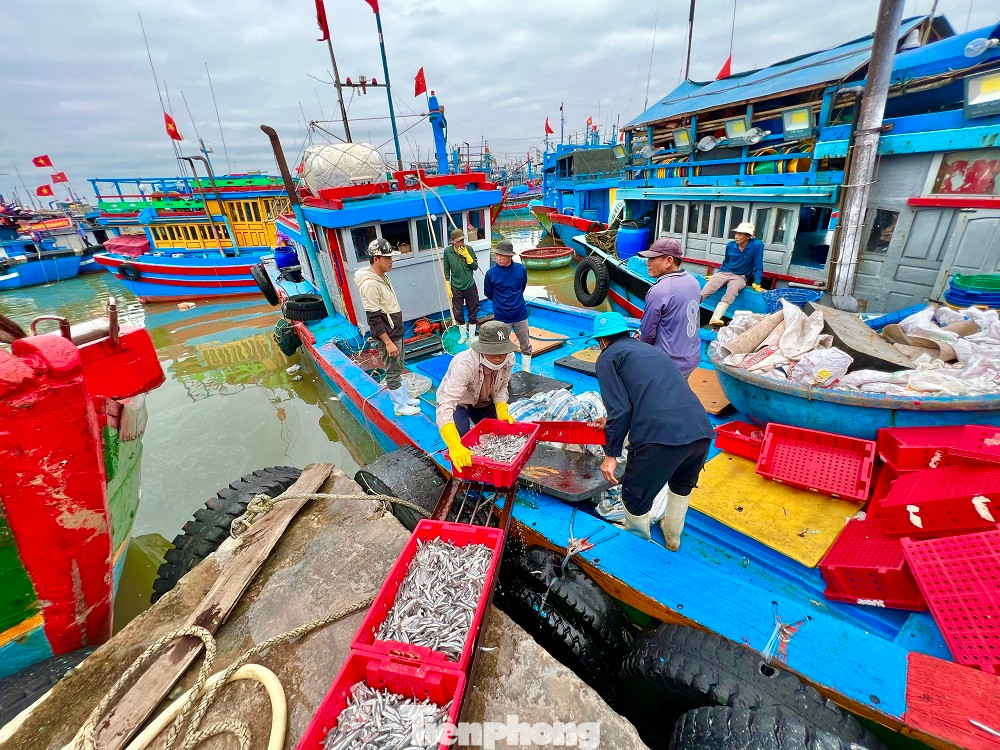 | Sau khi bán cá cho thương lái, ngư dân nơi đây tiếp tục nạp nhiên liệu và lương thực để ra biển đánh bắt cá cơm trong những ngày đầu xuân mới. |