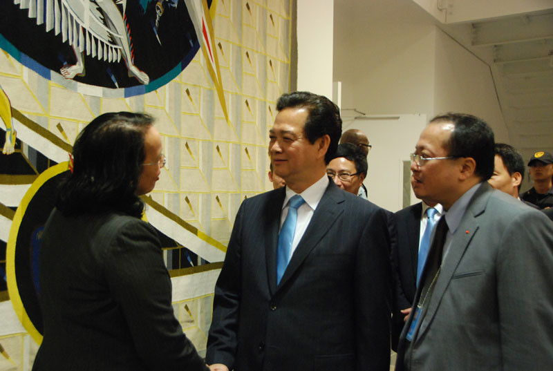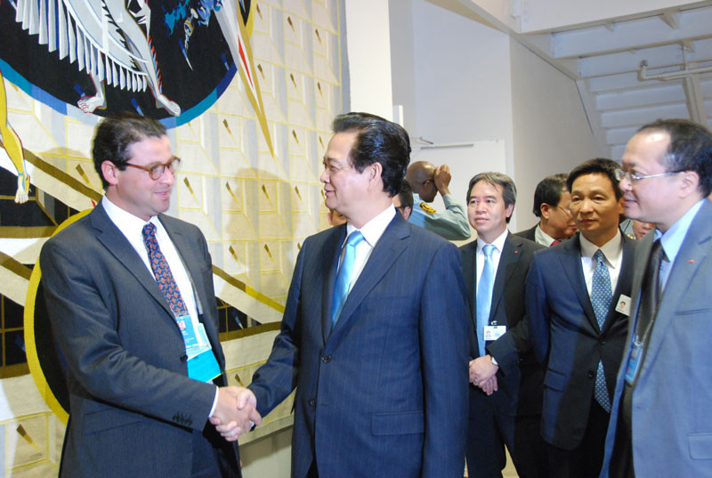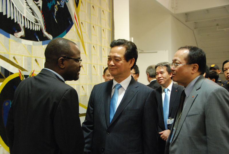 | Các quan chức LHQ chúc mừng Thủ tướng Việt Nam Nguyễn Tấn Dũng sau bài phát biểu. |
