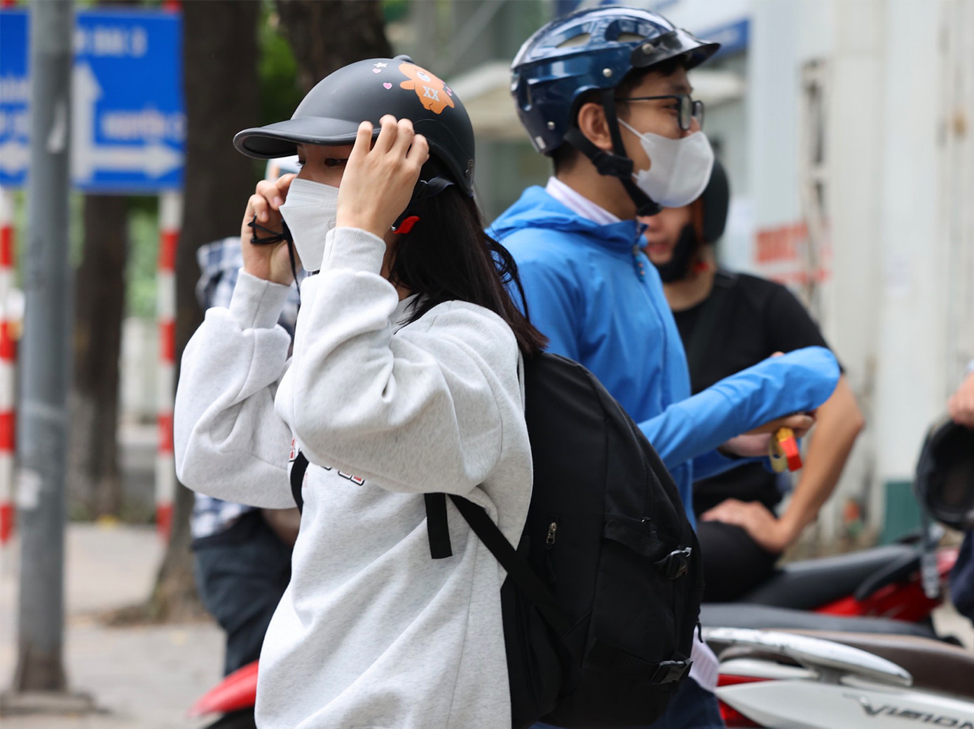 | Từ sáng sớm nay, nhiều người dân Hà Nội đã phải mặc thêm áo rét và áo mưa khi ra đường. |