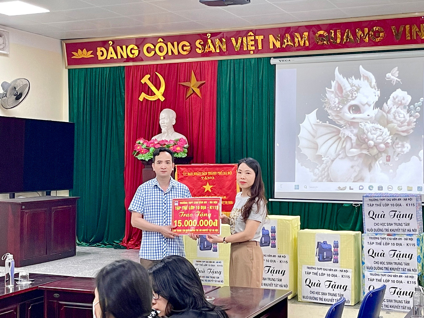 " Với khả năng và nhiệt huyết, trách nhiệm với cộng đồng, chúng ta – tập thể lớp 10 Địa- k115 THPT Chu Văn An, hãy tiếp tục lan tỏa tình yêu thương ấm áp tới nhiều mảnh đời còn kém may mắn trong cộng đồng" - Slogan của lớp chuyên Địa.