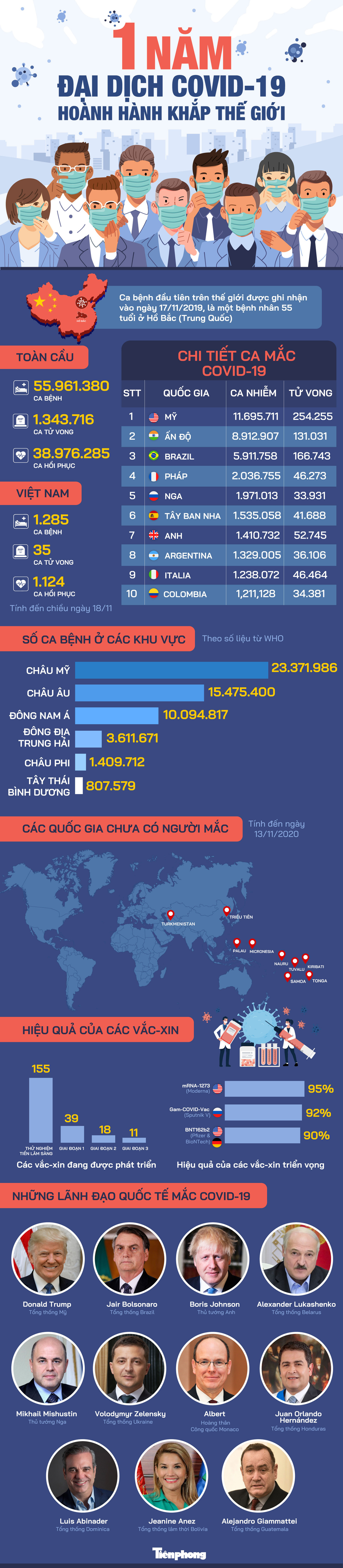 TPO - Cách đây một năm, ca bệnh COVID-19 đầu tiên được cho là đã xuất hiện ở Hồ Bắc (Trung Quốc). Virus SARS-CoV-2 sau đó tiếp tục lây lan với tốc độ chóng mặt, khiến gần 60 triệu người mắc bệnh và 1,3 triệu người tử vong.