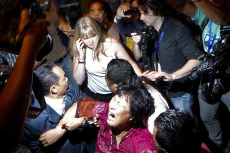 Nhiều thân nhân của hành khách MH370 thực sự bang hoàng khi nghe được tin về chuyến bay xấu số. Trong ảnh một phụ nữ Trung Quốc đã không kìm chế nỗi cảm xúc khi có mặt tại trung tâm họp báo về MH370 tại Kuala Lumpur hôm 19/3/2014.